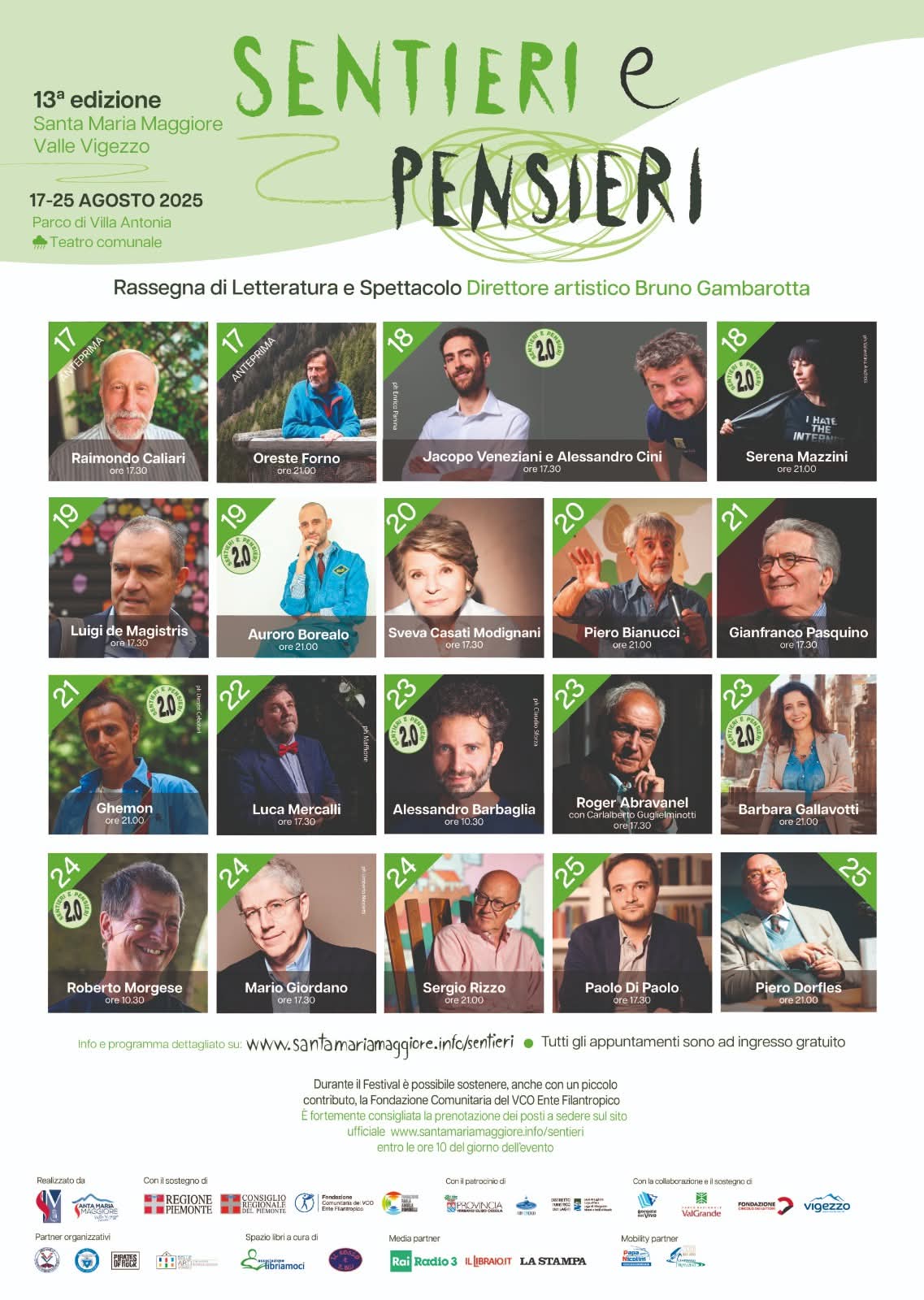 Santa Maria Maggiore, con il suo centro storico e il fascino alpino, è il contesto ideale per accogliere il festival. Sentieri e Pensieri non è solo cultura: è anche turismo sostenibile, valorizzazione delle bellezze locali e promozione del territorio.