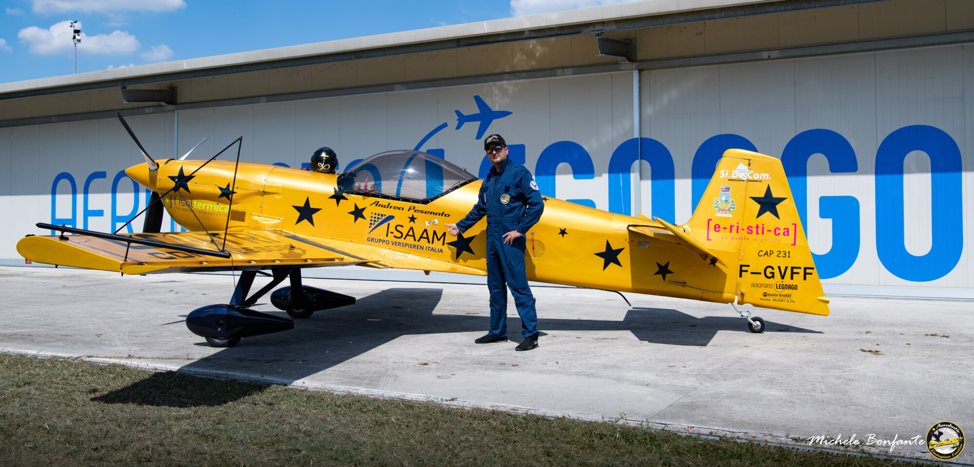 Segue un lungo stop di sei anni, dovuto alla ricerca di un velivolo tutto suo. Un sogno diventato realtà con l’acquisto del suo fedele Mudry CAP 231, l’aereo che oggi accompagna Andrea in manifestazioni e competizioni, protagonista di esibizioni che lasciano il pubblico col fiato sospeso. «È il mio 231 – racconta – con lui preparo il campo e disegno il cielo con i miei fumi, in attesa delle Frecce Tricolori».