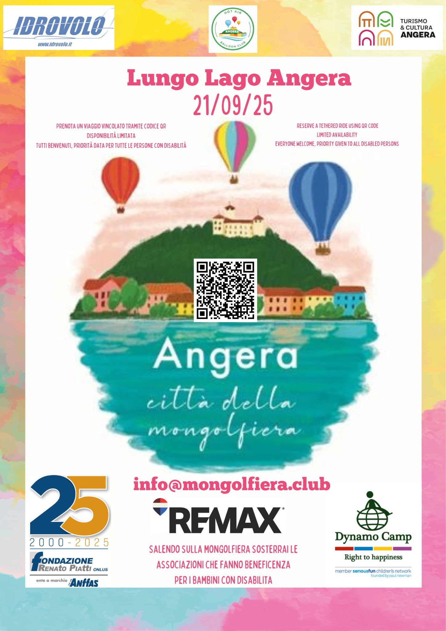 L’iniziativa è promossa dall’associazione sestese Idrovolo, insieme ai soci del Balloon Club, con il sostegno dell’amministrazione comunale angerese e dello sponsor Remax. Una sinergia che unisce il mondo del volo, il tessuto associativo e la realtà imprenditoriale, con l’obiettivo comune di coniugare spettacolo, emozione e solidarietà.