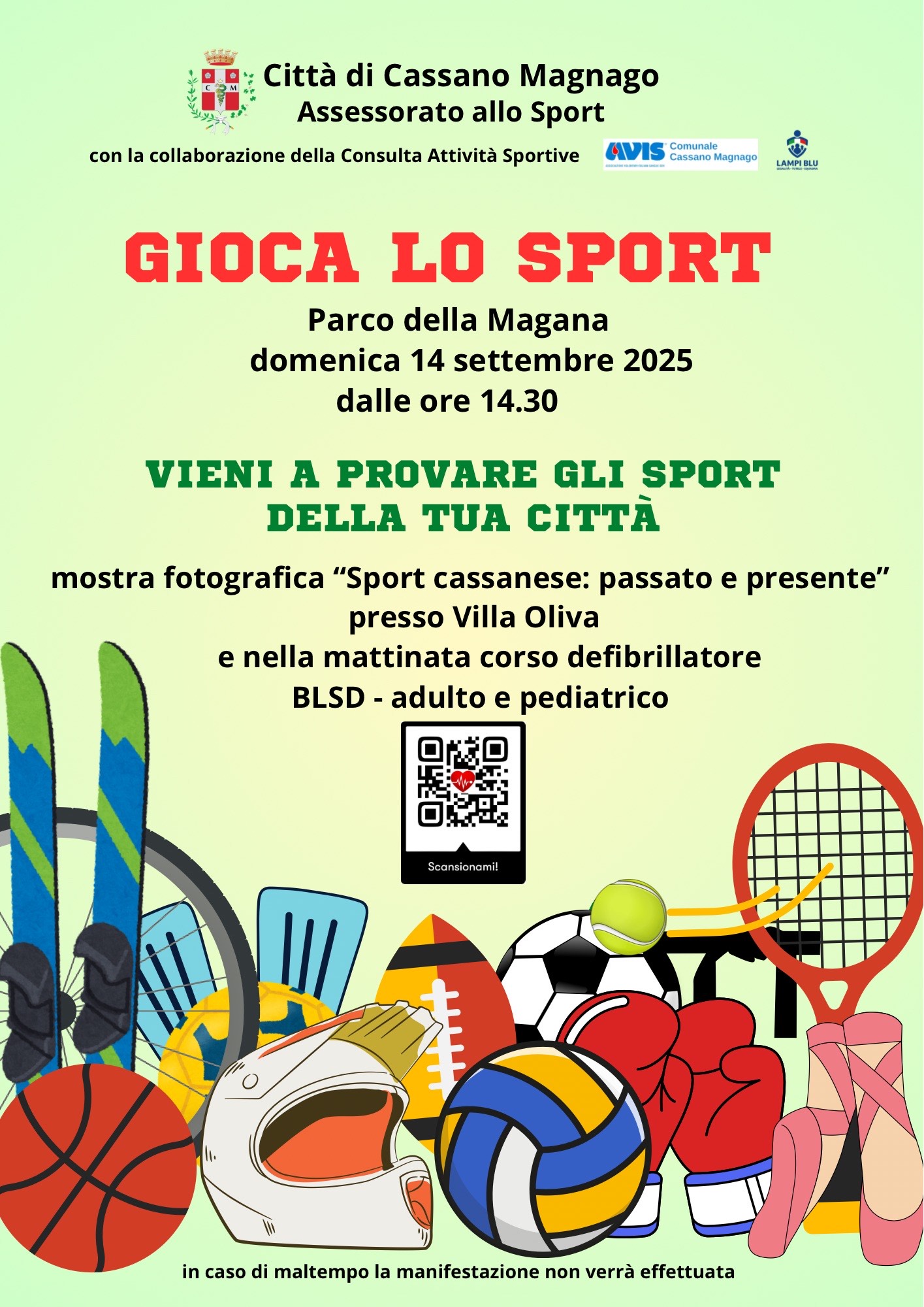 Gioca lo sport è più di un evento. È un invito a muoversi, a scoprire nuove passioni, a condividere momenti con la comunità. Domenica 14 settembre, Villa Oliva e il Parco della Magana saranno il cuore pulsante dello sport cassanese.