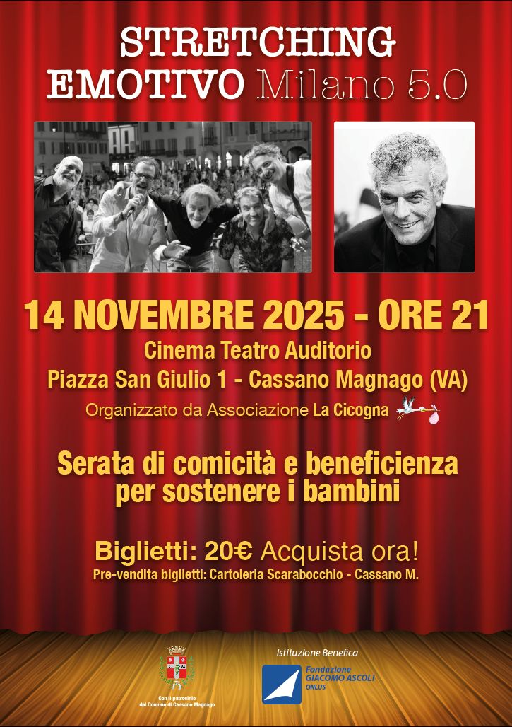 Il 14 novembre 2025, alle ore 21, il Cinema Teatro Auditorium di Cassano Magnago ospita “Stretching Emotivo – Milano 5.0”.