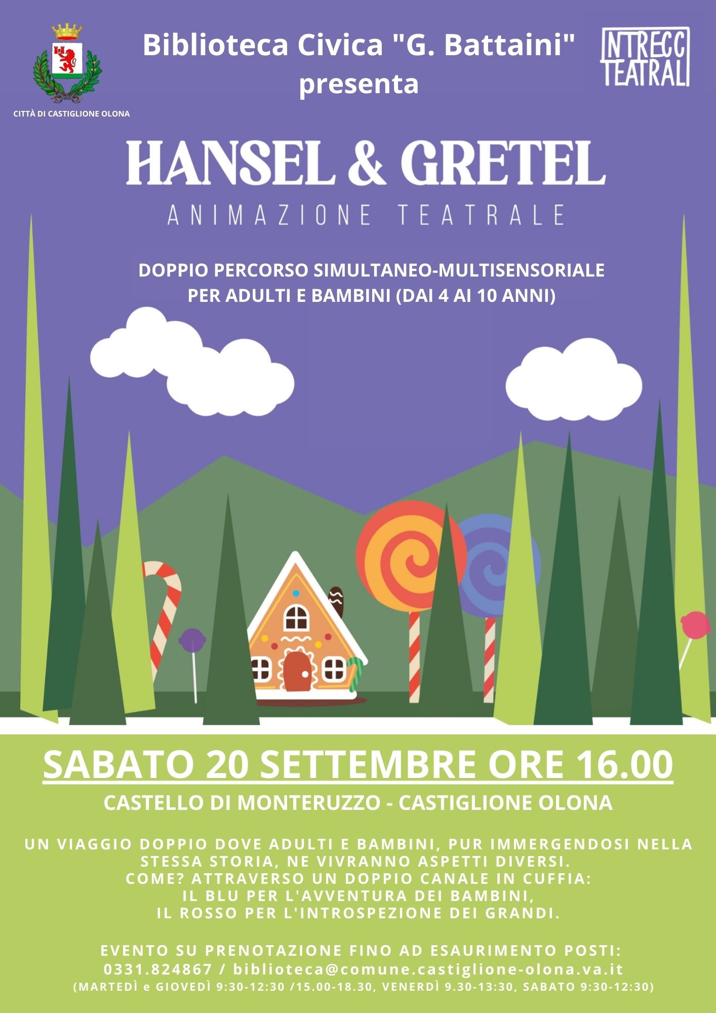 Sabato 20 settembre la Biblioteca Civica G Battaini e la compagnia Intrecciteatrali presentano lo spettacolo di animazione teatrale Hansel & Gretel Castiglione Olona.