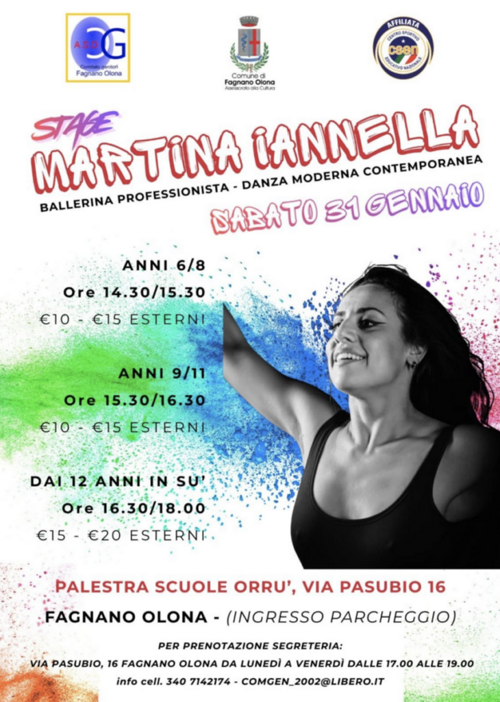31 Gennaio infatti ci sarà lo stage di Danza Moderna e il 28 Febbraio quello di Danza Classica con ballerine professioniste, aperto anche ad allieve esterne ai corsi del comitato stesso