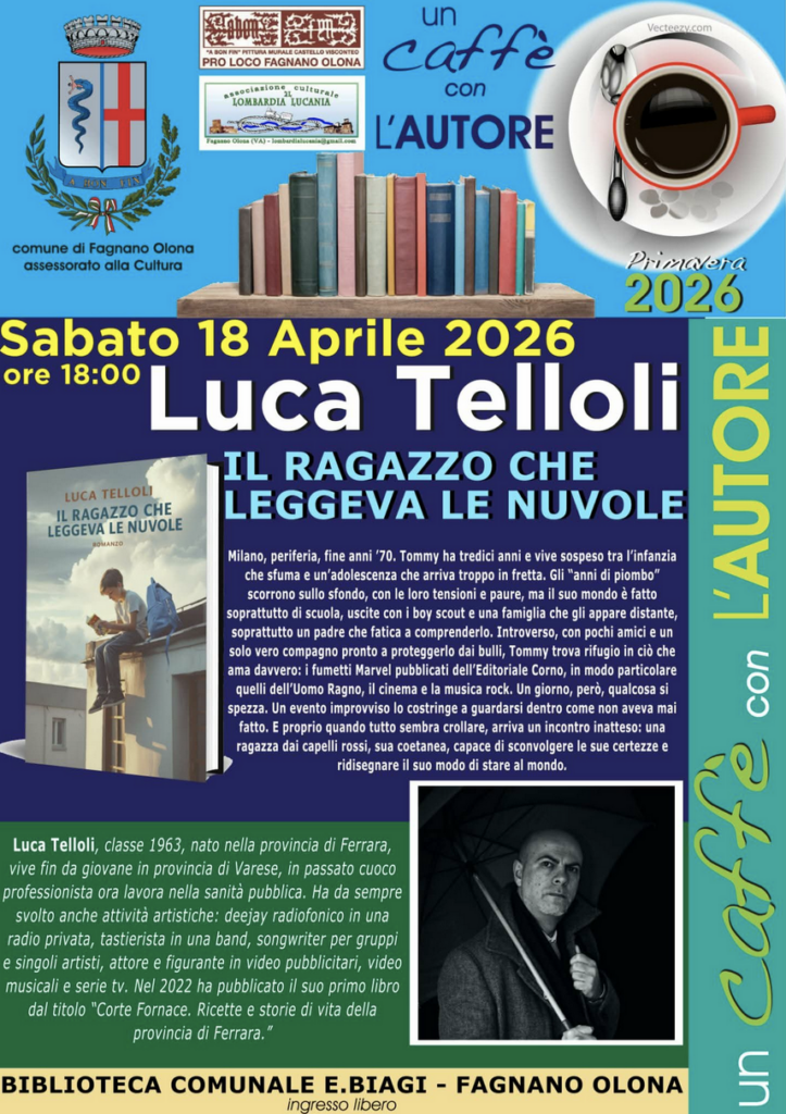 Fagnano Olona, Luca Telloli, protagonista al Caffè con l’Autore. Torna il Caffè con l’Autore e il protagonista di questo appuntamento di sabato 18 aprile sarà Luca Telloli