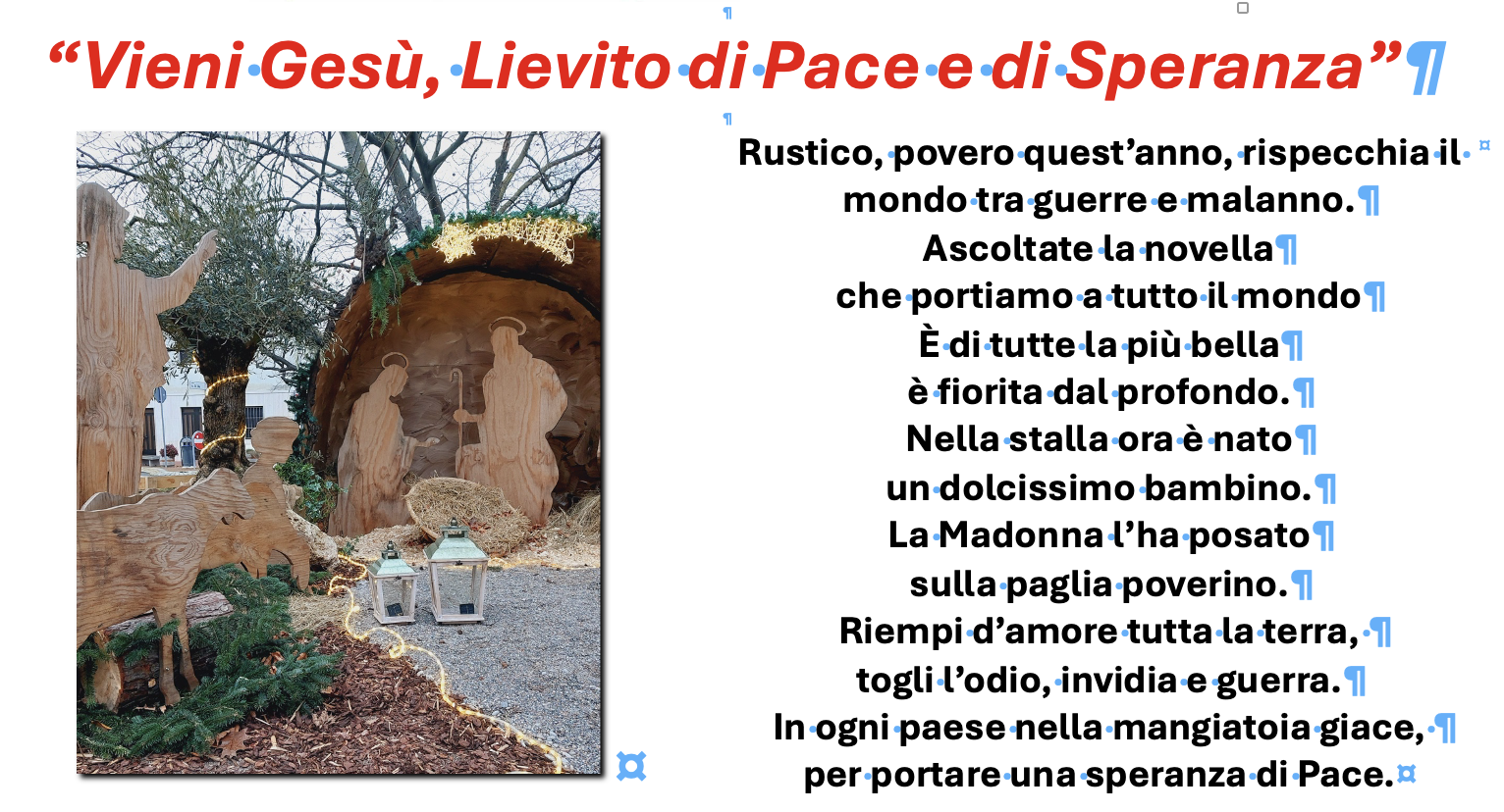 Torna quindi anche quest’anno una tradizione bella e significativa come quella del Presepe in piazza, così come in questi giorni caratterizza la vita di ogni città.