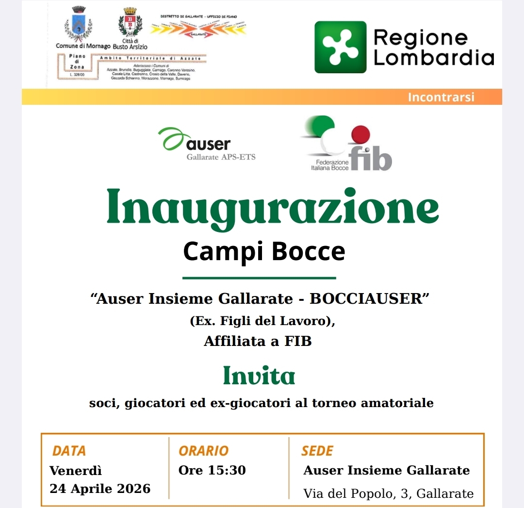 Inaugurazione campi bocce Gallarate: un evento per la comunità e l’invecchiamento attivo