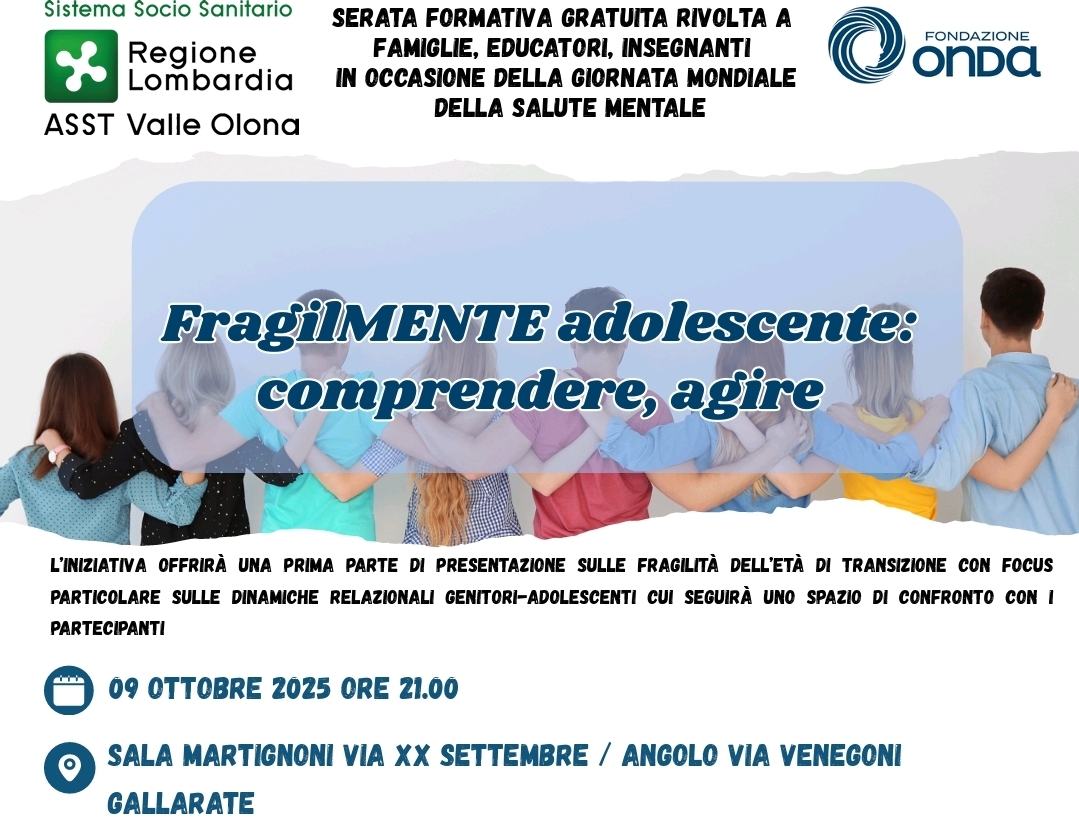 Il titolo dell’incontro è “FragilMente Adolescente: comprendere, agire”.