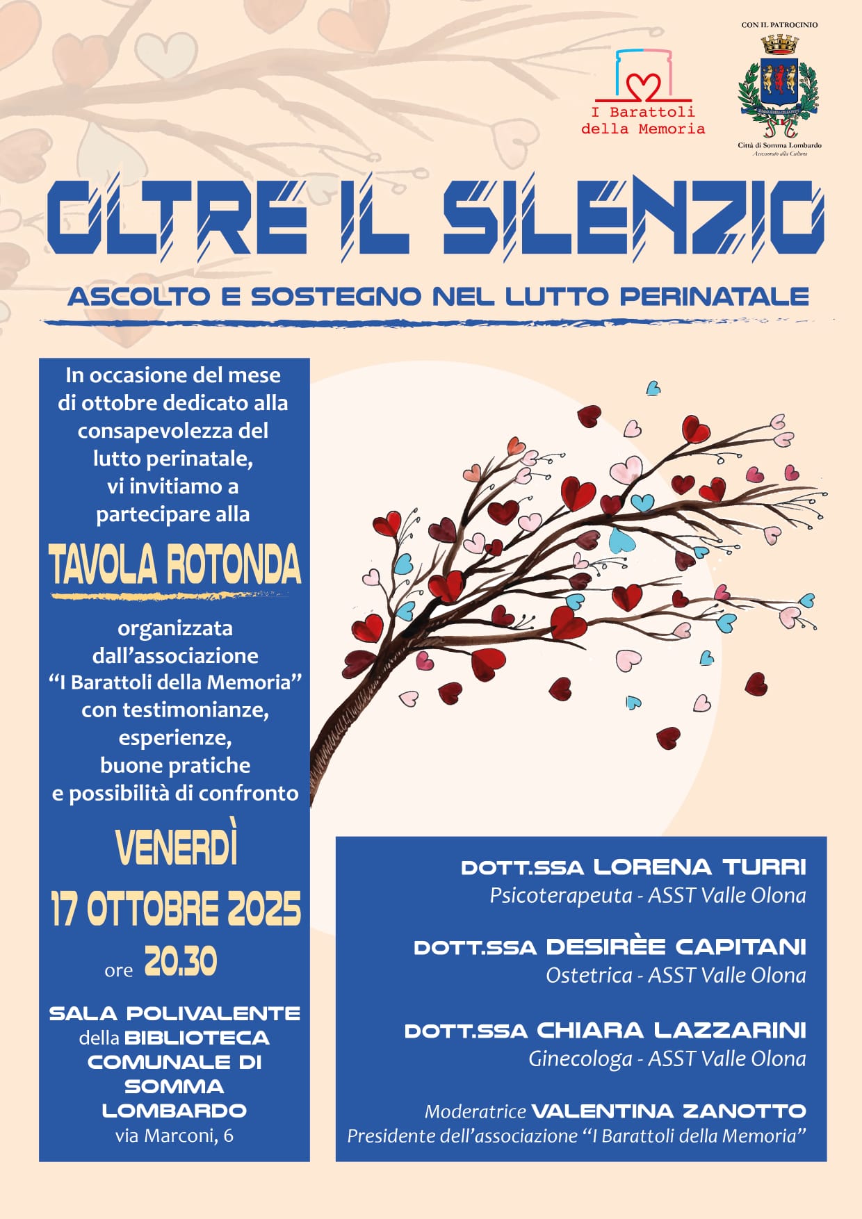 Il 17 ottobre, a Somma Lombardo, si terrà la tavola rotonda “Oltre il silenzio: ascolto e sostegno nel lutto perinatale”.