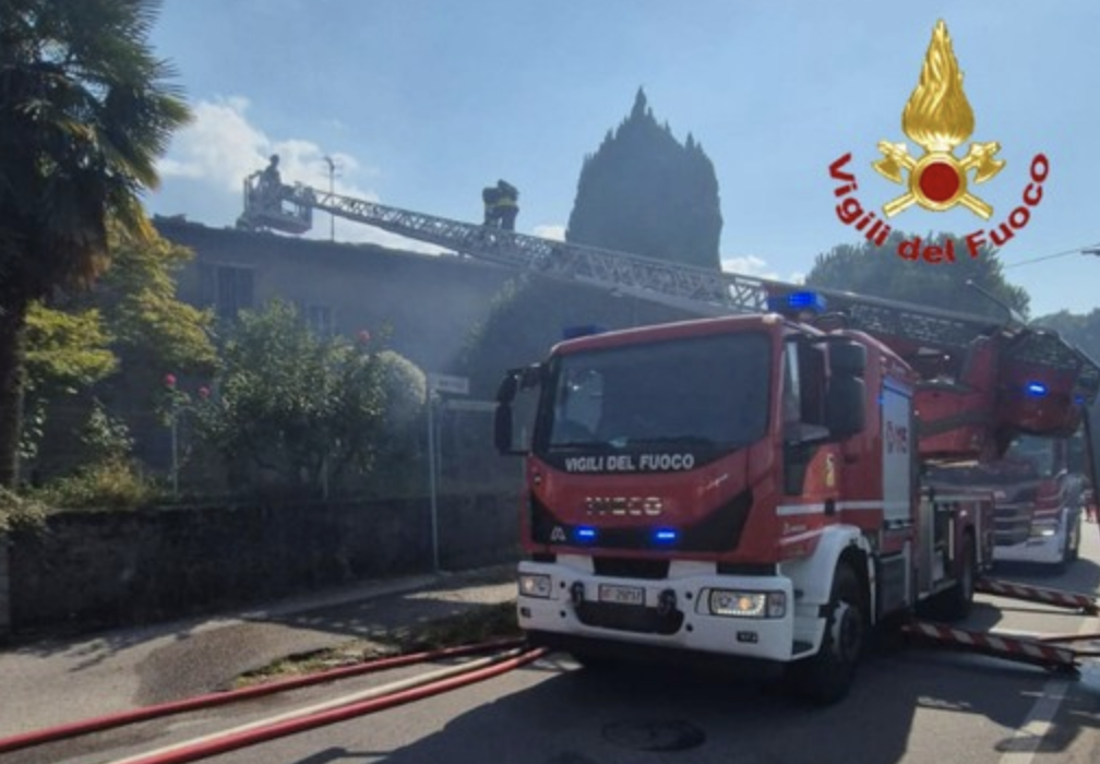 al lavoro AREU-118 Incendio Incidente Tetto in fiamme Varese Vergiate Vigili del Fuoco