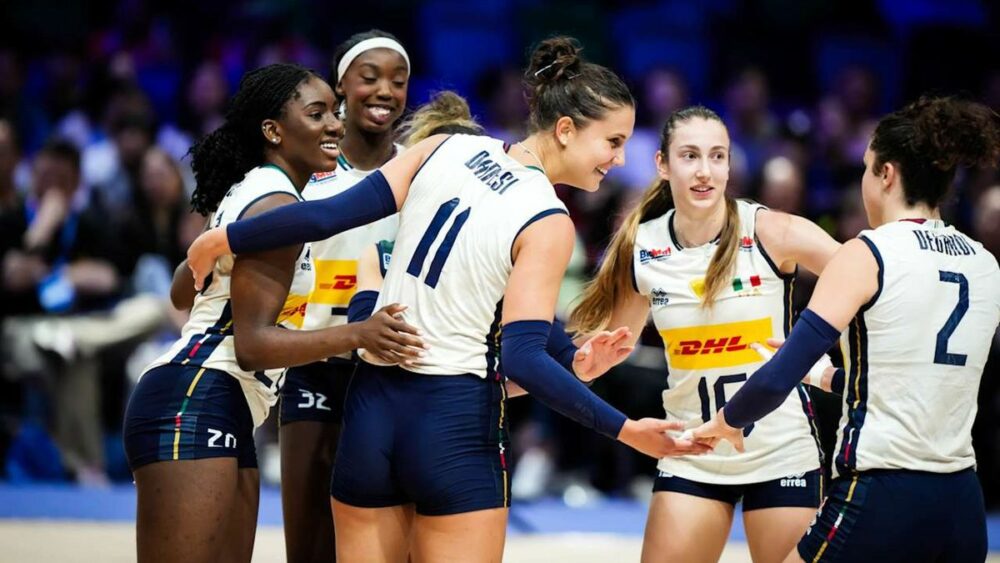 ITALIA: Egonu 21, Nervini 13, Fahr 9, Cambi 4, Degradi 14, Danesi 3, De Gennaro (L), Malual 1, Eze, Nwakalor 4, Giovannini. N.E. Sartori, Omoruyi e Fersino (L). All. Velasco.
