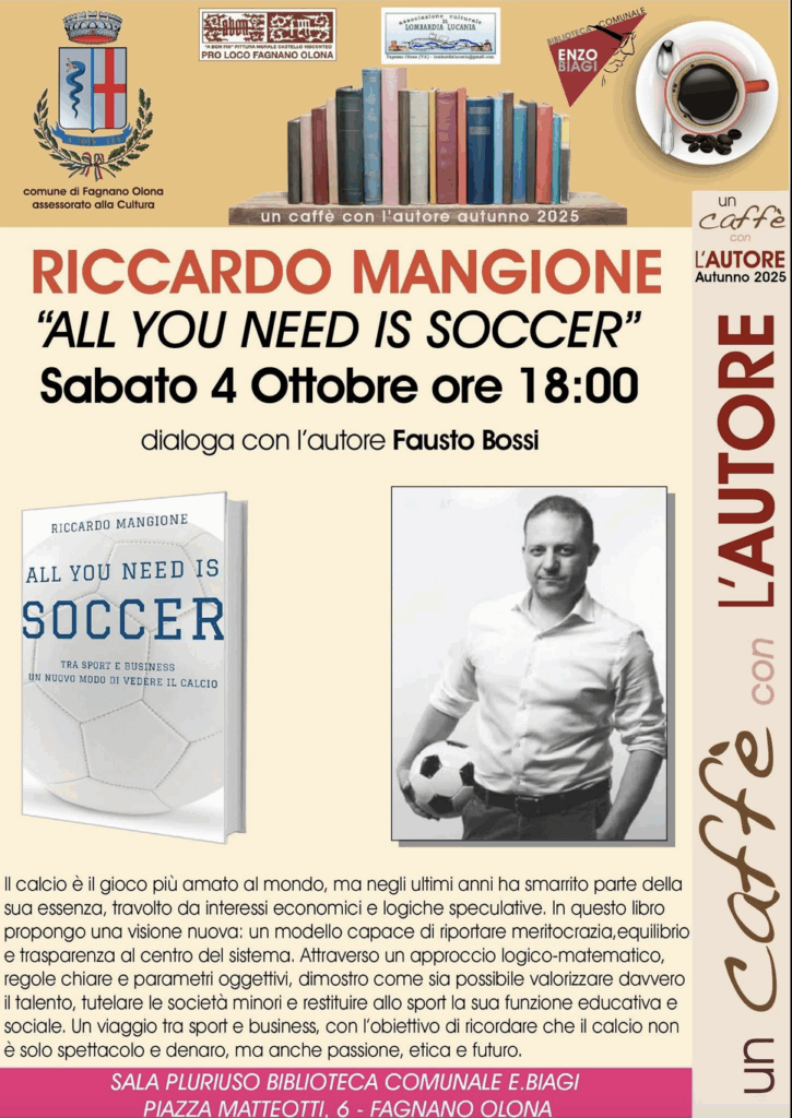Fagnano Olona, “Un Caffè con l’Autore Autunno 2025”, rassegna al via. Torna la rassegna letteraria “Un Caffè con l’Autore Autunno 2025”, organizzata dal’amministrazione comunale con un fitto calendario di incontri per immergersi nelle pagine dei libri e dialogare direttamente con gli scrittori, emergenti o già affermati che siano.