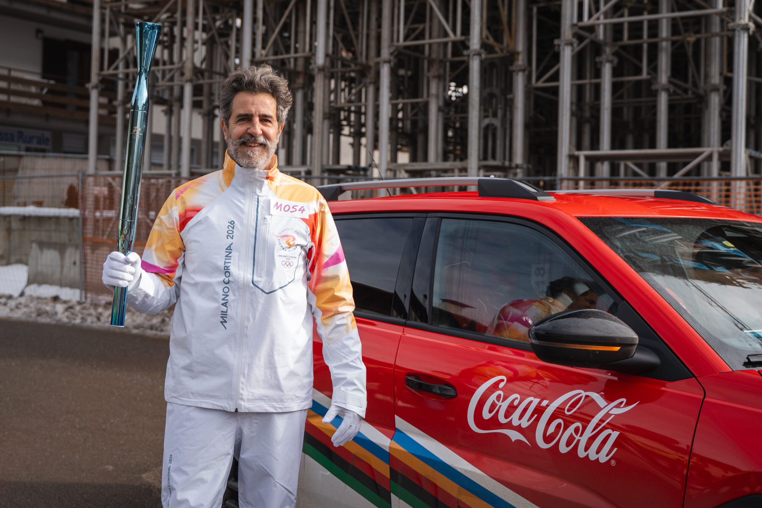 Massimo Temporelli tedoforo a Livigno per il viaggio della fiamma olimpica di Milano Cortina 2026 l’emozione della torcia con Coca-Cola