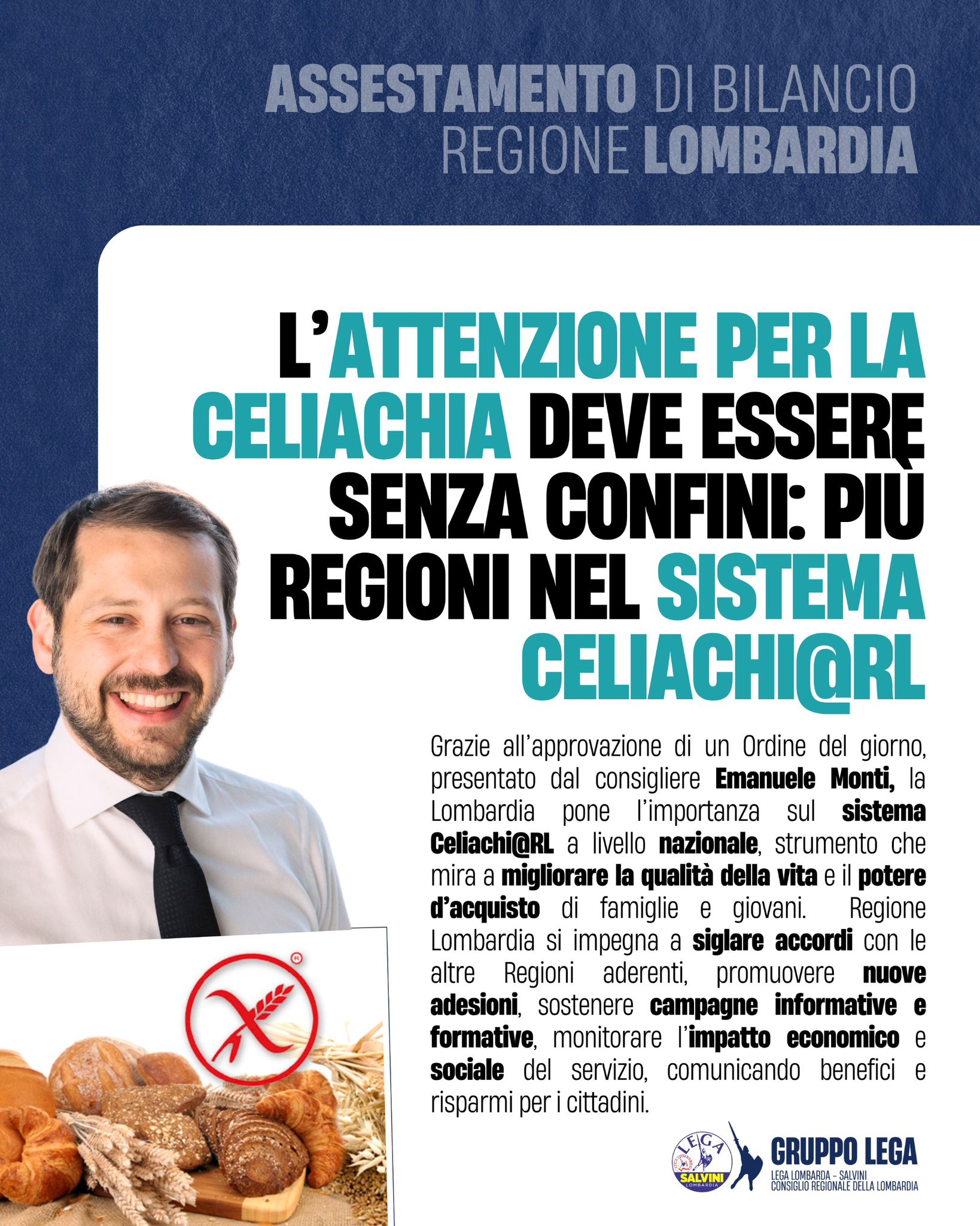 Celiachi@RL, Monti (Lega): modello lombardo da estendere in tutta Italia