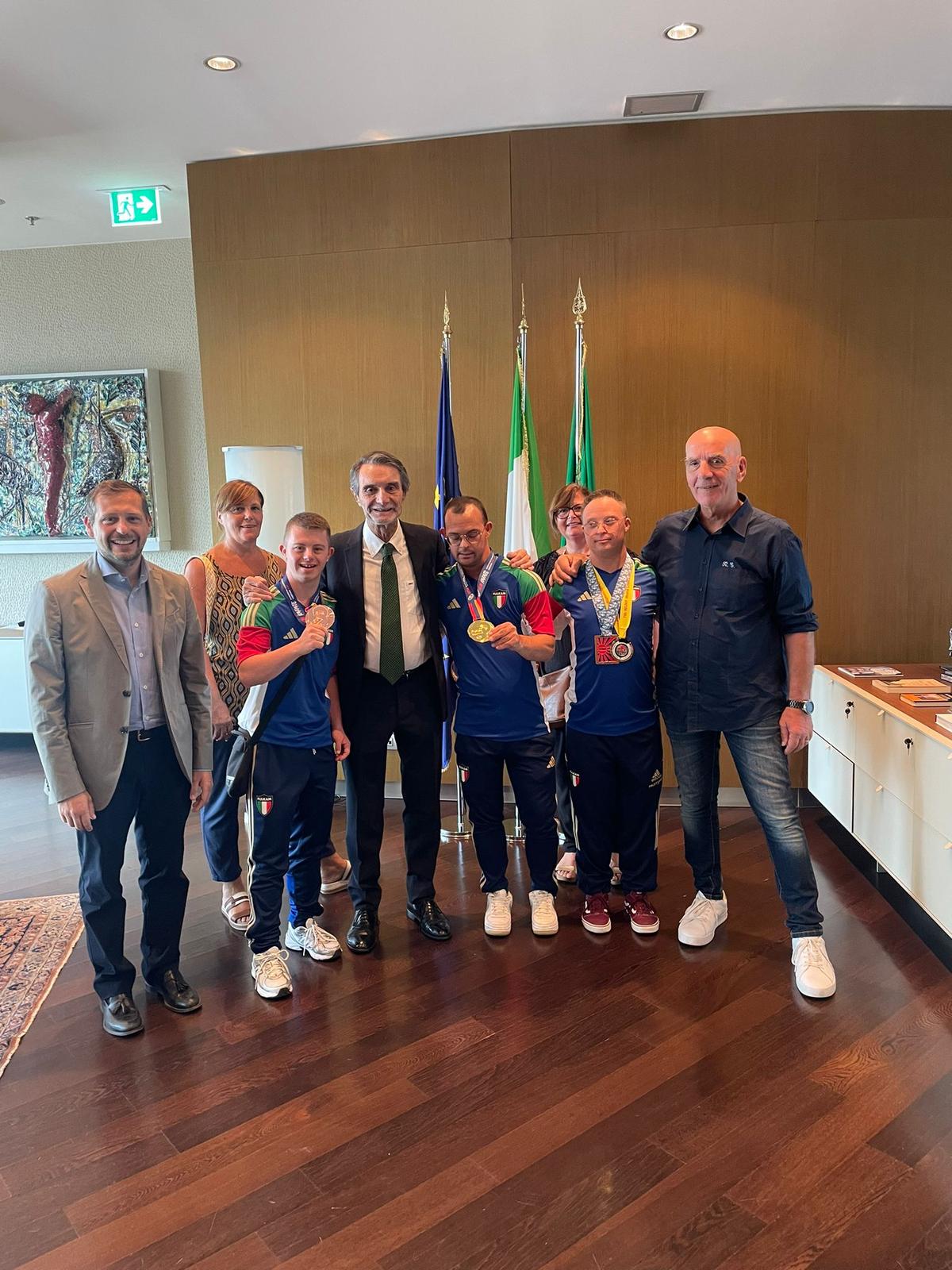 Il secondo atleta ricevuto dal presidente Fontana è stato Patrick Buwalda, bronzo agli Europei in Armenia 2025 nella categoria K22 ed il terzo Daniele Montanari, quinto classificato ai Mondiali di Dubai e alle Olimpiadi di Vichy. Questi straordinari atleti rappresentano un esempio di dedizione, talento e inclusione, dando ogni giorno visibilità e valore allo sport per le persone con sindrome di Down.