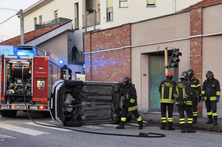 Fagnano Olona, incidente, auto ribaltata, 2 feriti